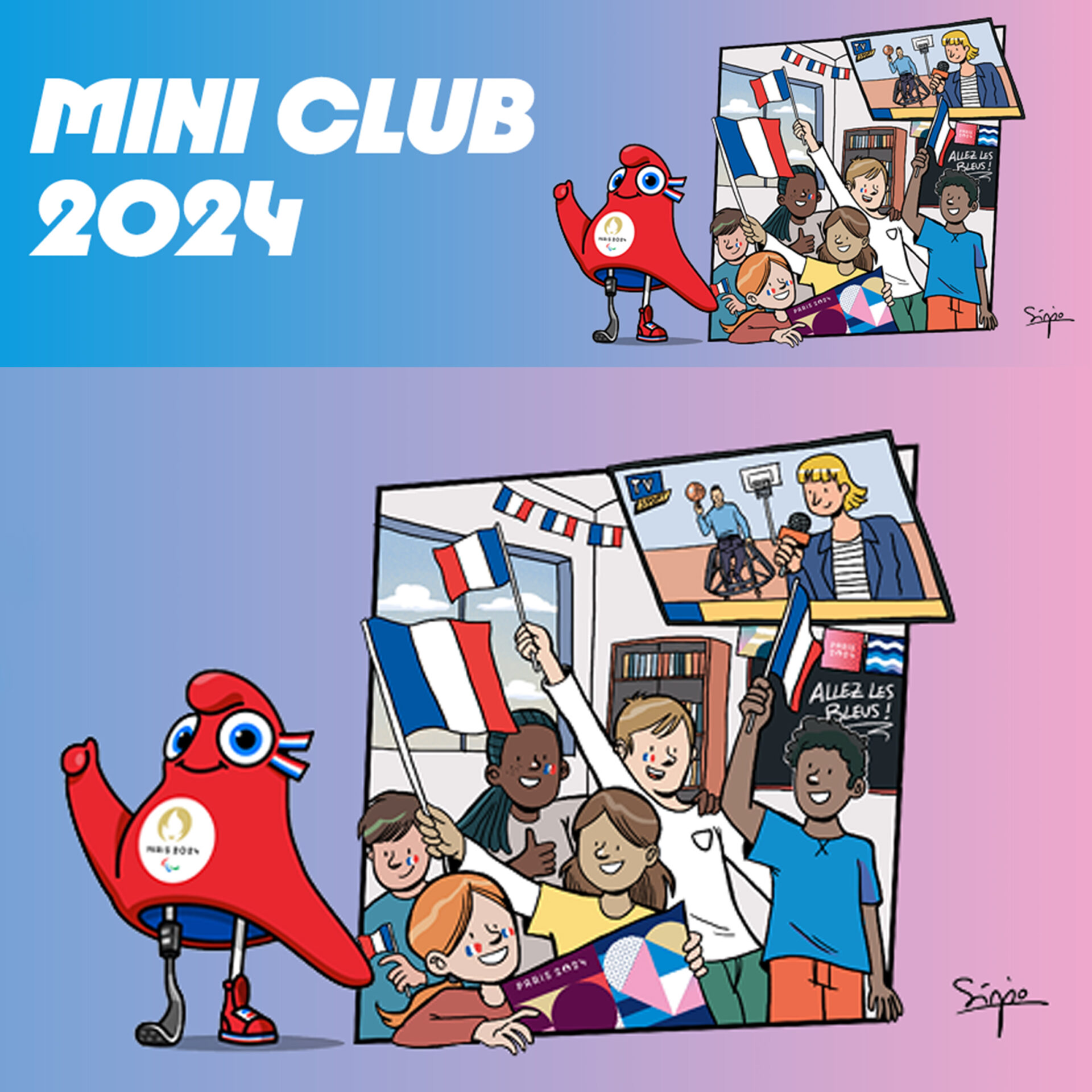 As ilustrações servirão também, de forma isolada ou integral, na comunicação do evento “Mini Club Paris 2024”.