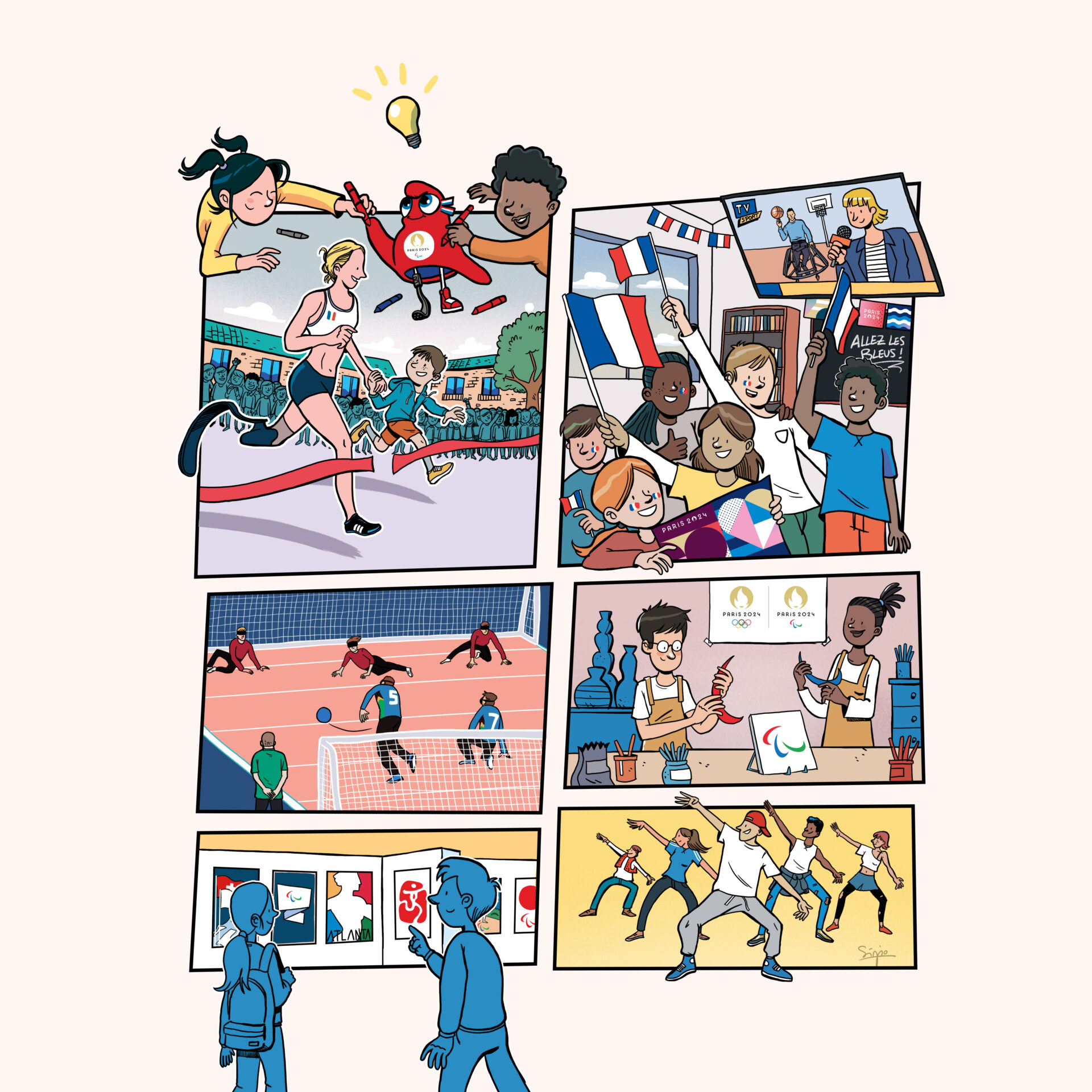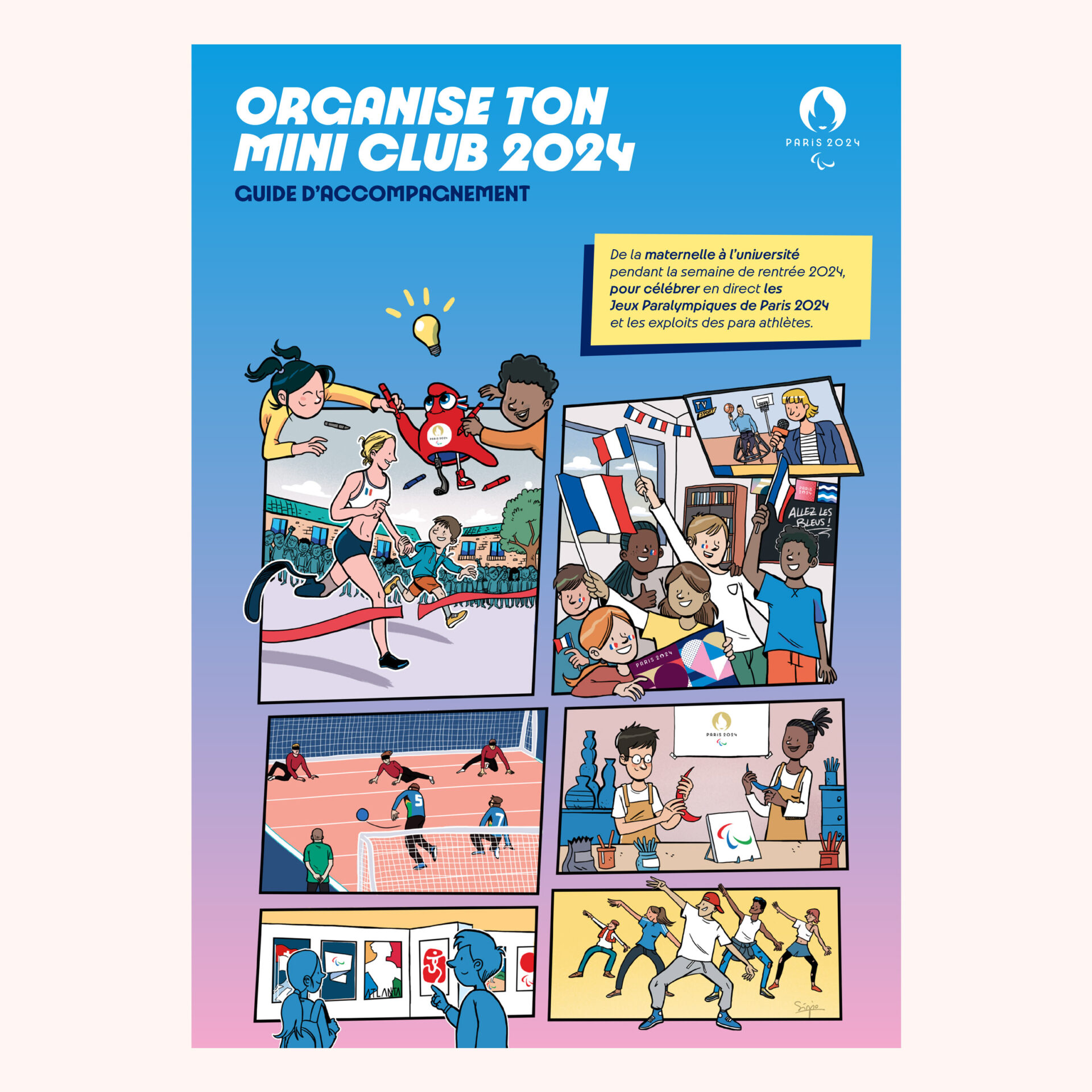 Tive a oportunidade singular de ser convidado para participar num projeto para Paris 2024 - Comité d'organisation des Jeux Olympiques et Paralympiques de 2024, que finalmente posso partilhar. É um guia que tive a oportunidade de ilustrar, com foco na celebração dos jogos paralímpicos (que irão decorrer do 28 de agosto até dia 8 de setembro), e que permite a qualquer estudante francês, desde o ensino básico ao universitário, de organizar na sua escola, liceu ou universidade, uma jornada com atividades em torno dos jogos paralímpicos Paris 2024 (workshops, atividades, atletas convidados, palestras e outros).