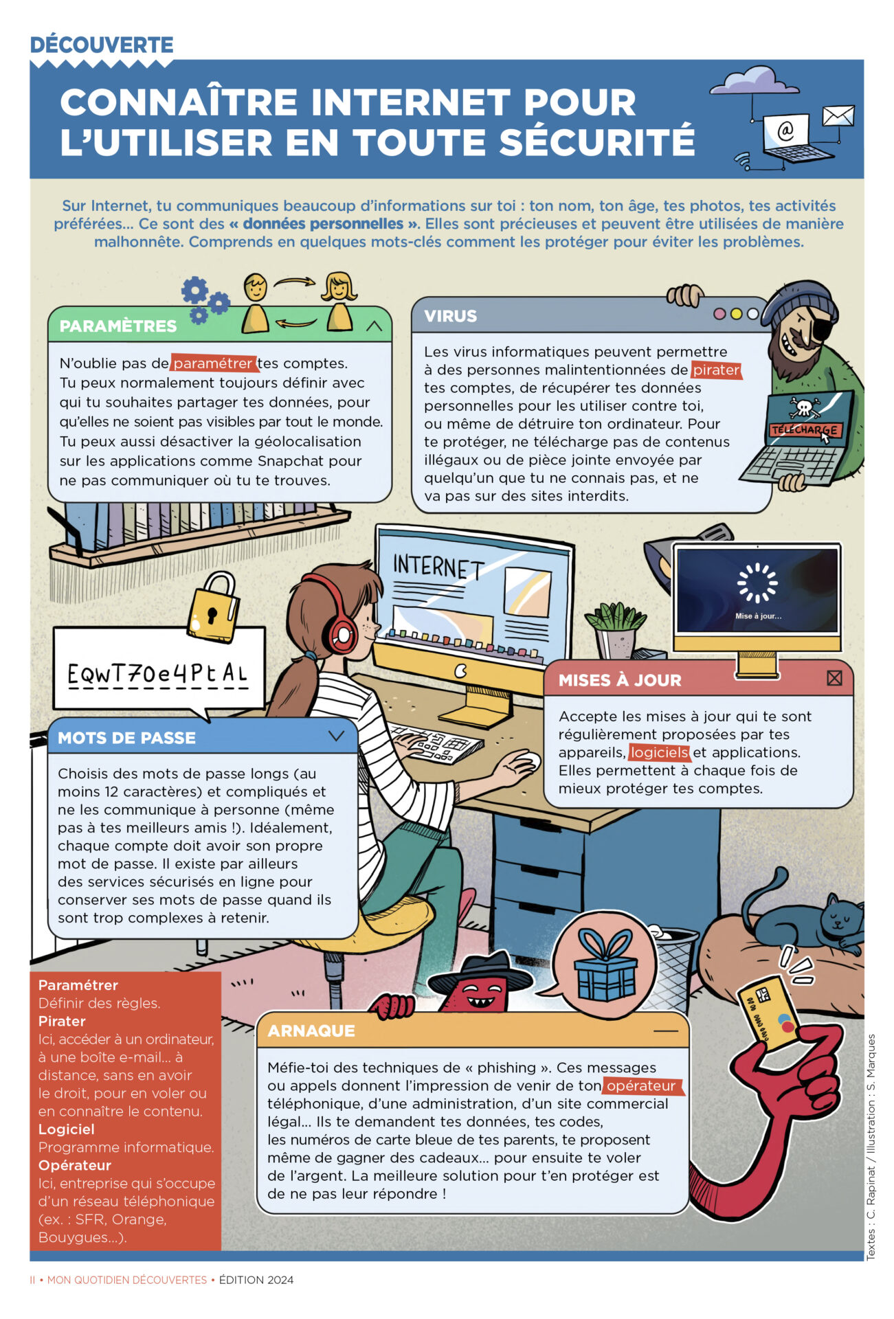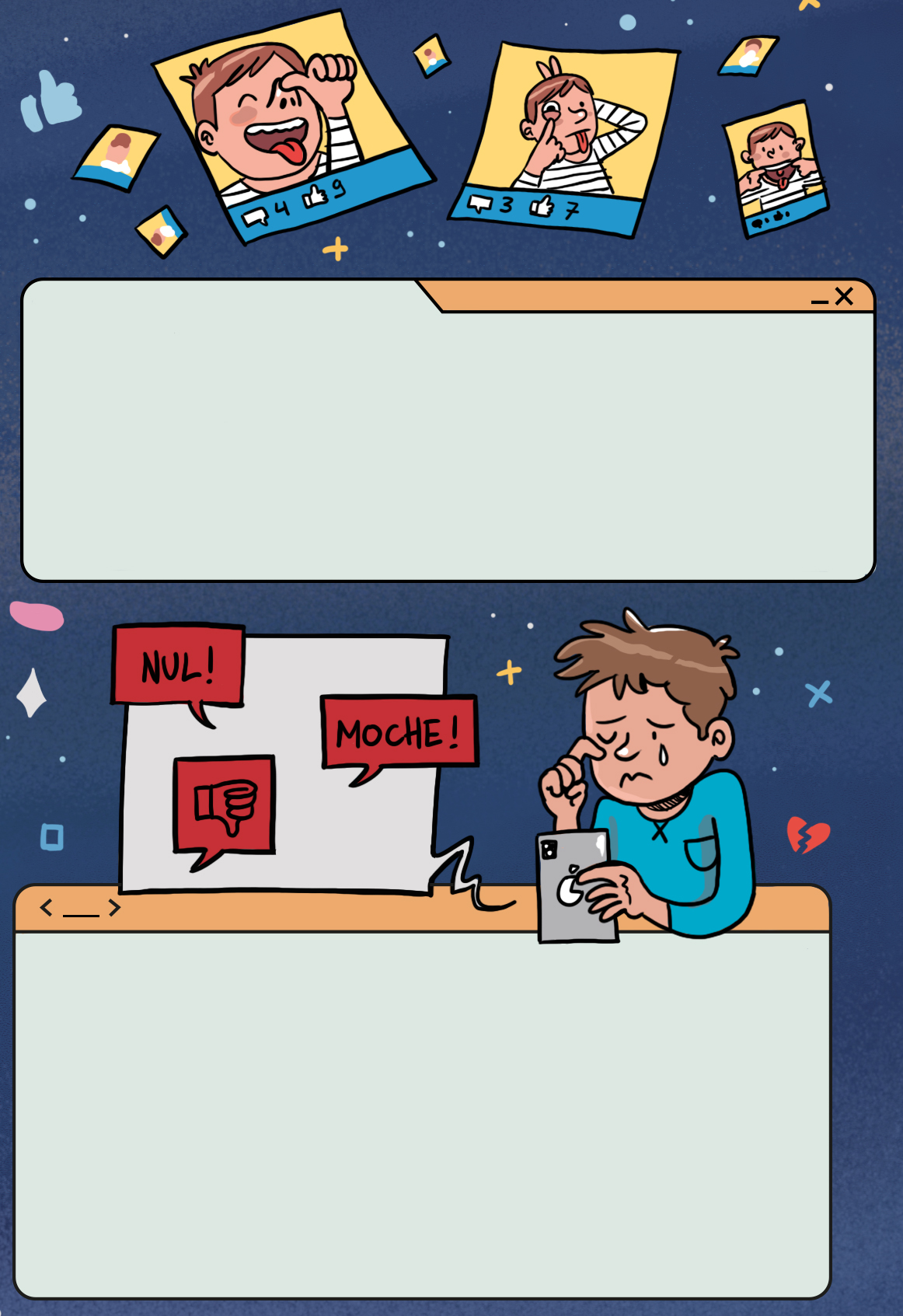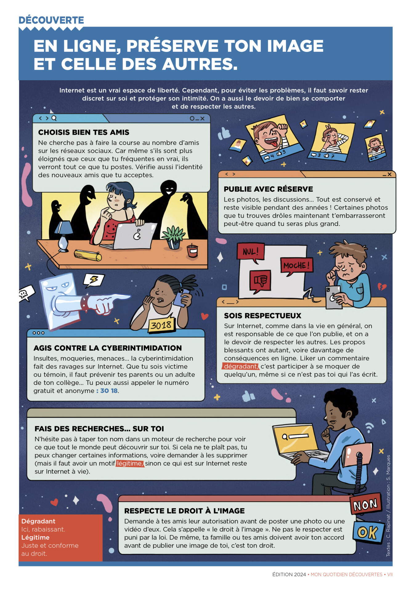 I made these two infographics for the children's newspaper "Mon Quotidien" (France) about virtual harassment (cyberbullying) which talks about the danger of exposing young people's personal lives on social networks (and the Internet in the broadest sense), tips for protecting our personal data and how to identify/report other inappropriate behaviors for a healthier and more balanced consumption of digital content.